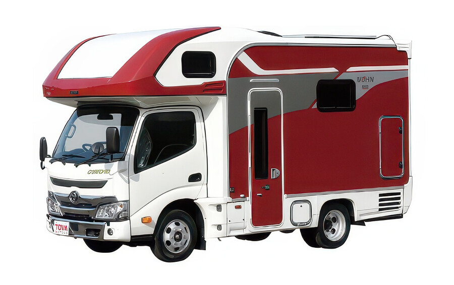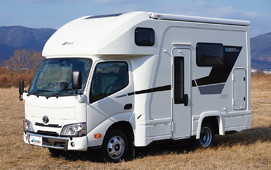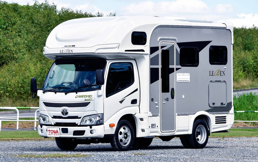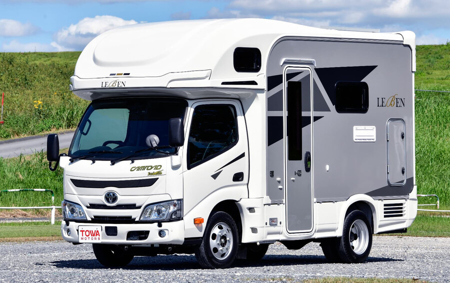 高断熱アルミコンポジットパネルとトリプルサブバッテリーを標準装備した、東和モータースの主力キャブコンシリーズ。
