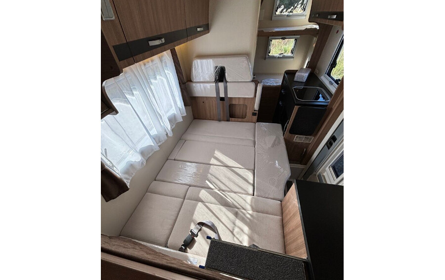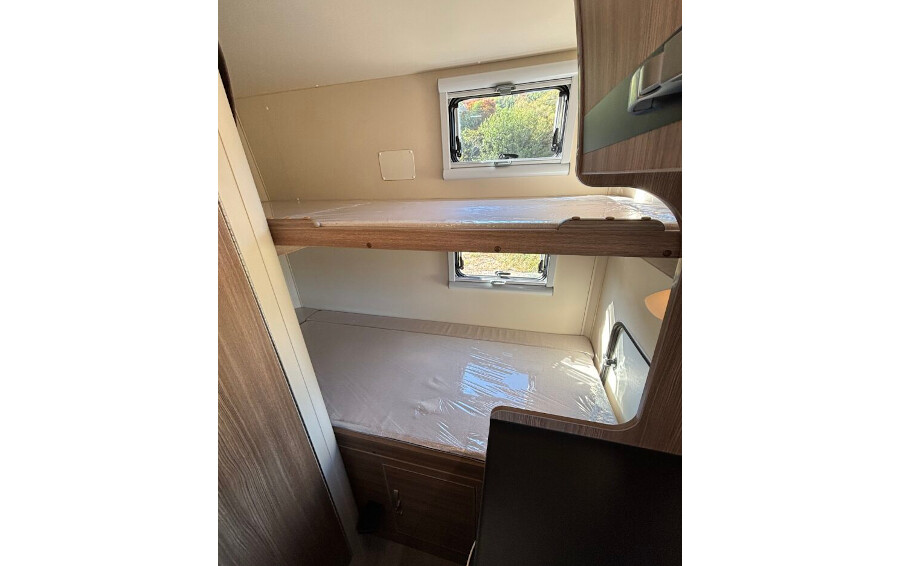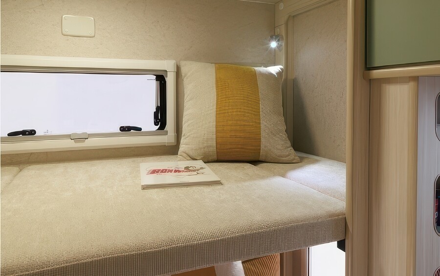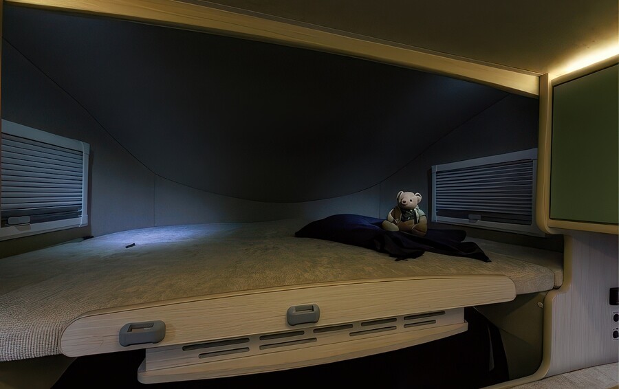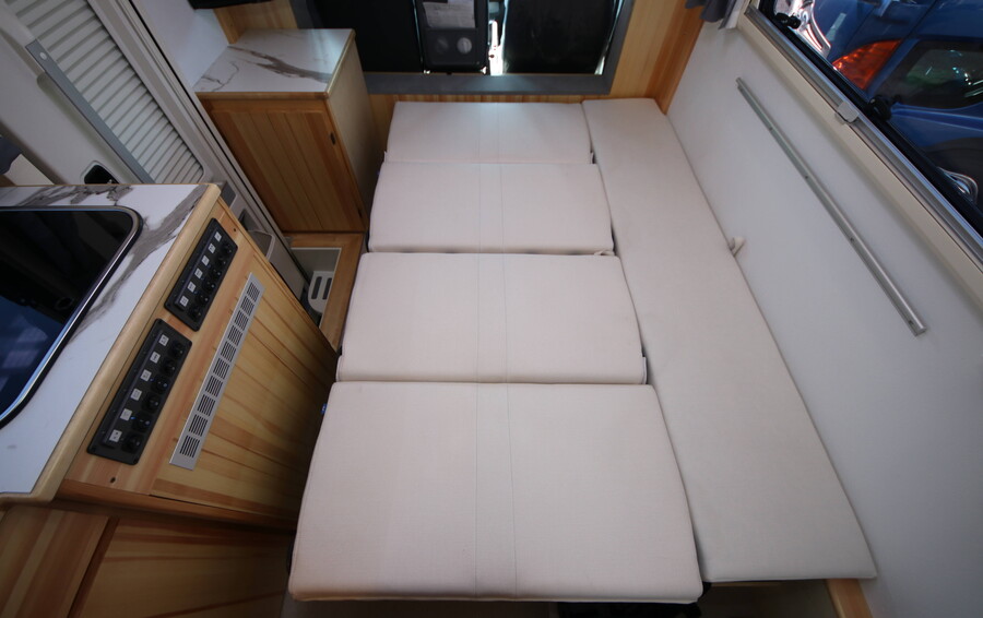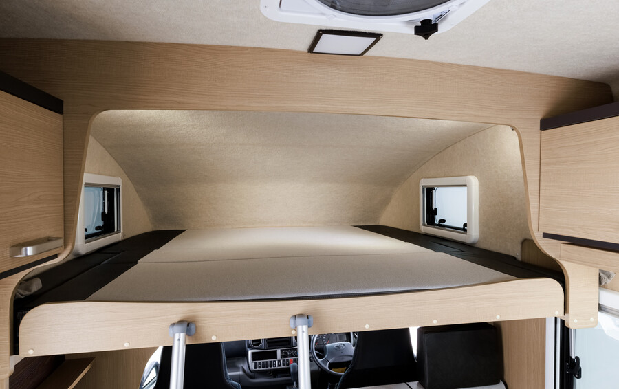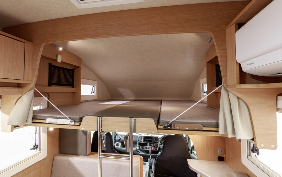 - バンクベッド: サンルーフを備えた広々としたバンクベッド(1500×1800mm)。