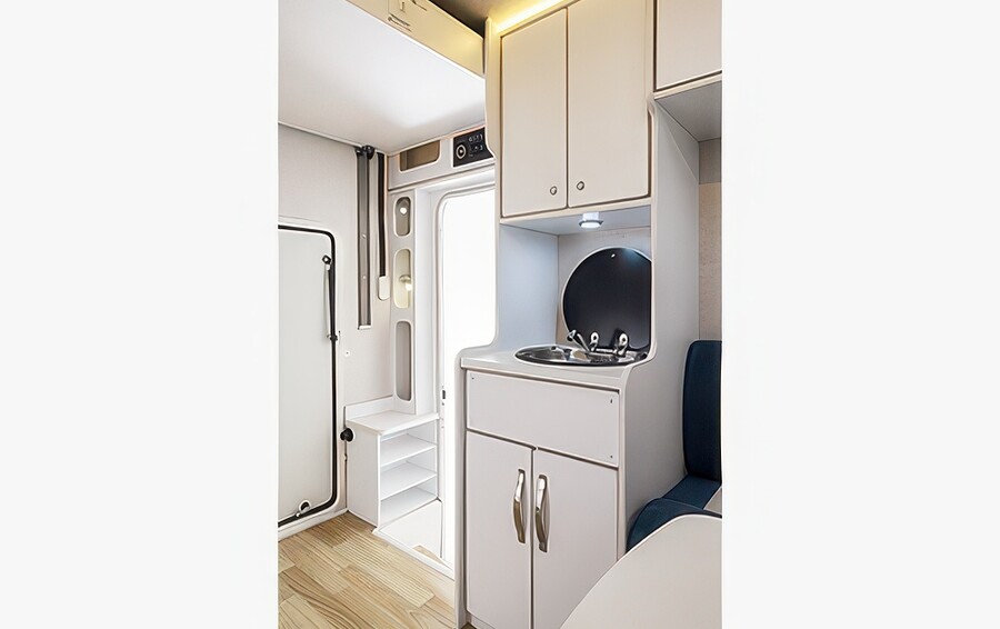 - キッチン: シンクおよび各19Lの給排水タンクを備えたキッチンシステム。