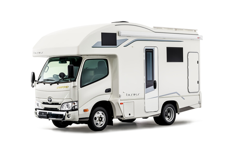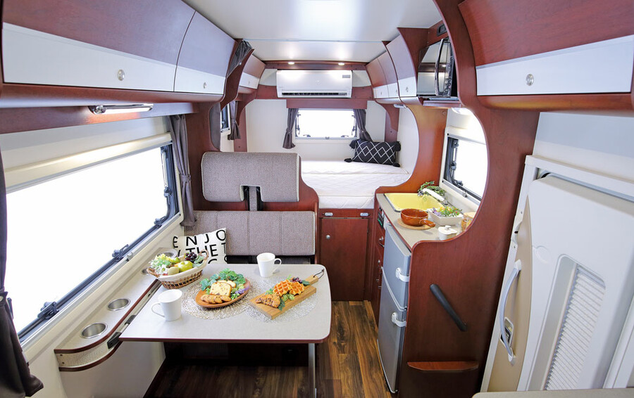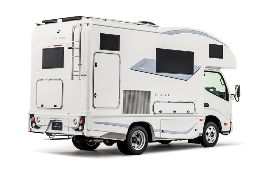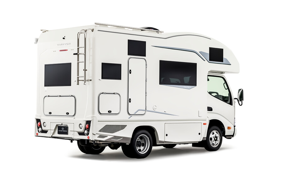 日本の道路事情に最適化した全幅192cmのスリムなキャブコン。家庭用エアコン、トリプルバッテリー、ソーラーパネルなど充実した装備を標準搭載したハイパフォーマンスモデル。