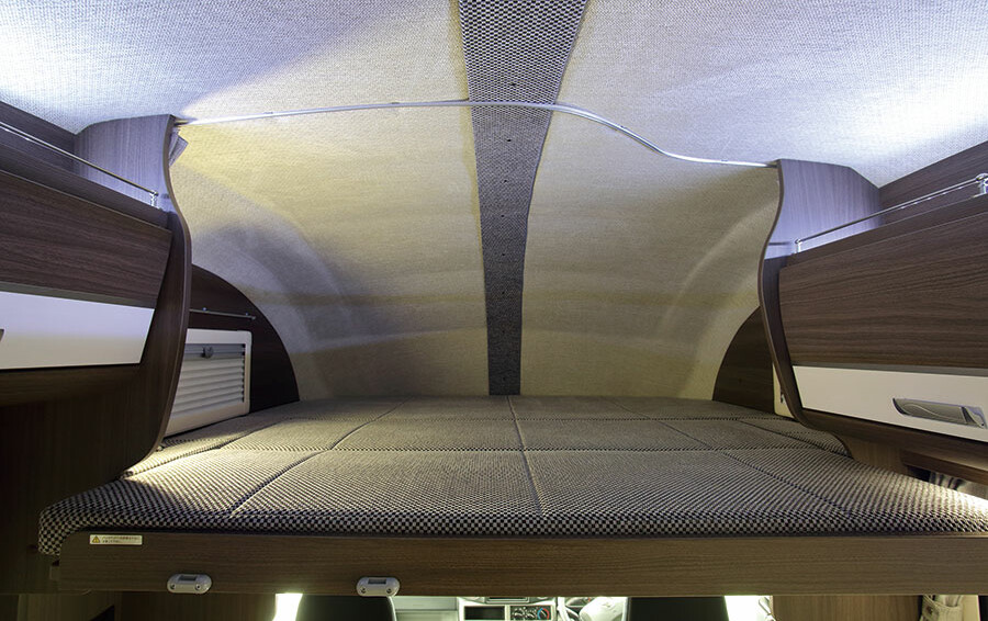 - リアベッド: ウッドスプリングを採用した幅1400mmの常設ダブルベッド。