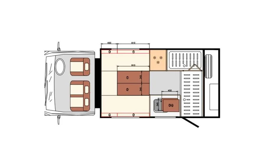 • 内装: 昇降・スライド式のダイネットテーブル。
