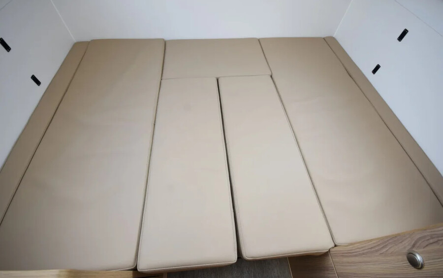 - ダイネットベッド: フロアベッド(1800×1300mm)として展開可能なダイネット。