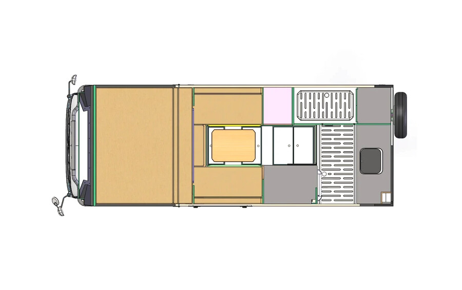- 内装: 昇降・スライド式のダイネットテーブル。