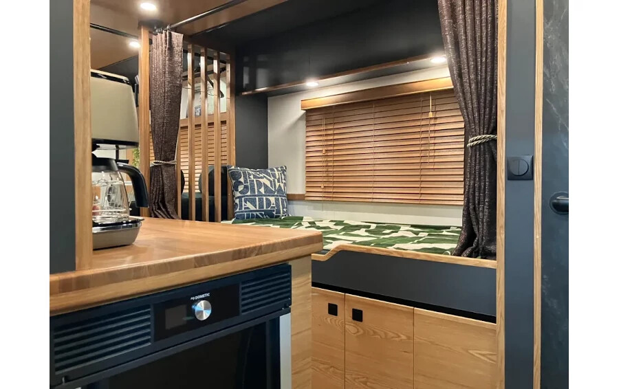 - 電装システム: 10kWhリチウムバッテリー、2000Wインバーター2台、ナビのサブバッテリー駆動システムに加え、合計780W(Webサイト表記970W)のソーラーパネルを完備。