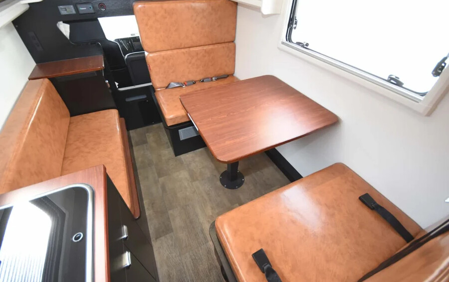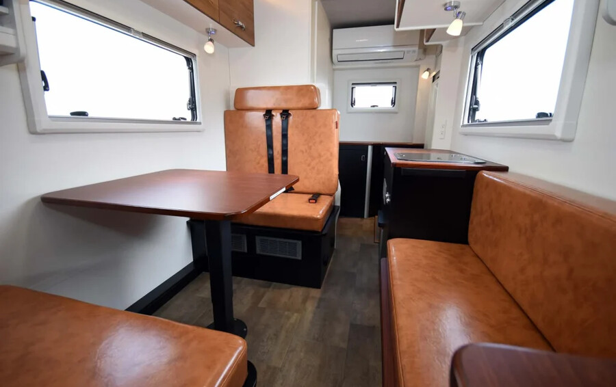 後部エントランスによる広々としたダイネット空間が特徴のモデル。リチウムイオンバッテリーやFFヒーター、カーナビなどが最初から標準装備されたハイグレード仕様です。