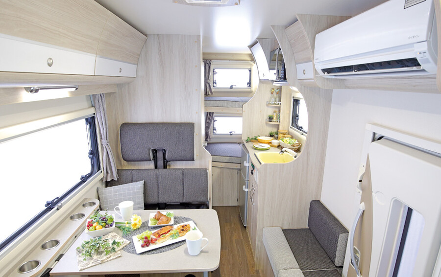 • 内装その他: トライアングルシート(補助マット)により座面に余裕を持たせた4人掛けダイネット。