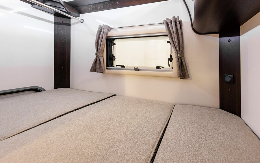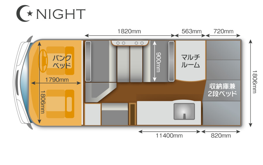 - バンクベッド: 大人2人が就寝可能な広さを確保したスライド式バンクベッド。