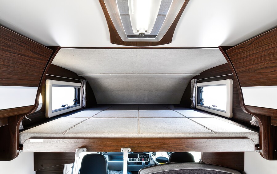 • ベッド: 大人3名が就寝可能なダイネットベッドと、アルミラダー付きスライド式バンクベッド。