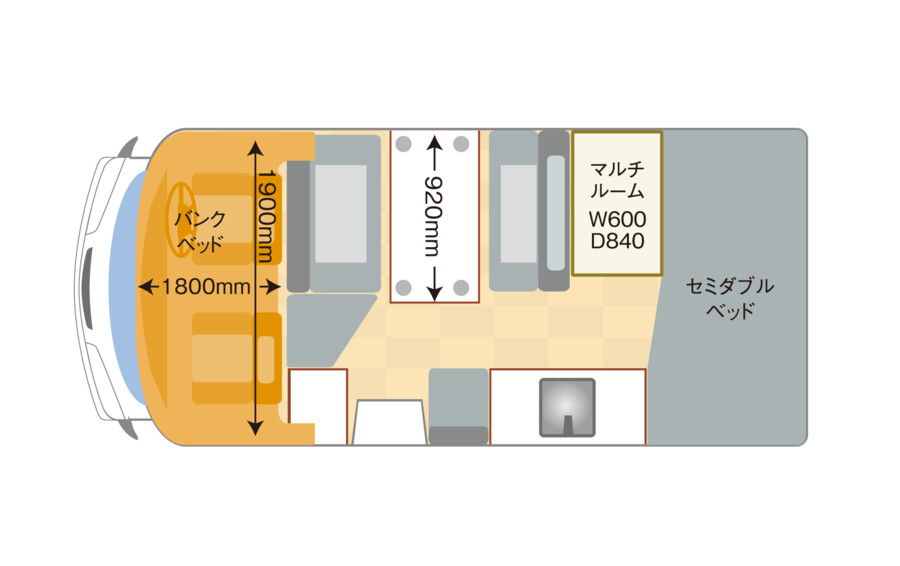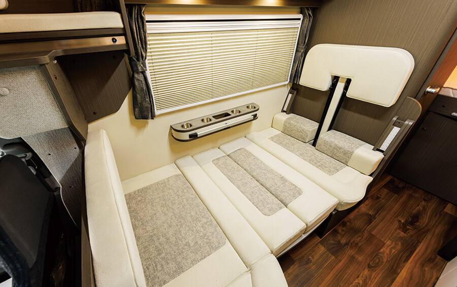 - バンクベッド: 走行安定性と収納力を重視したスタイリッシュな形状のバンクベッド(高さ500mm)。