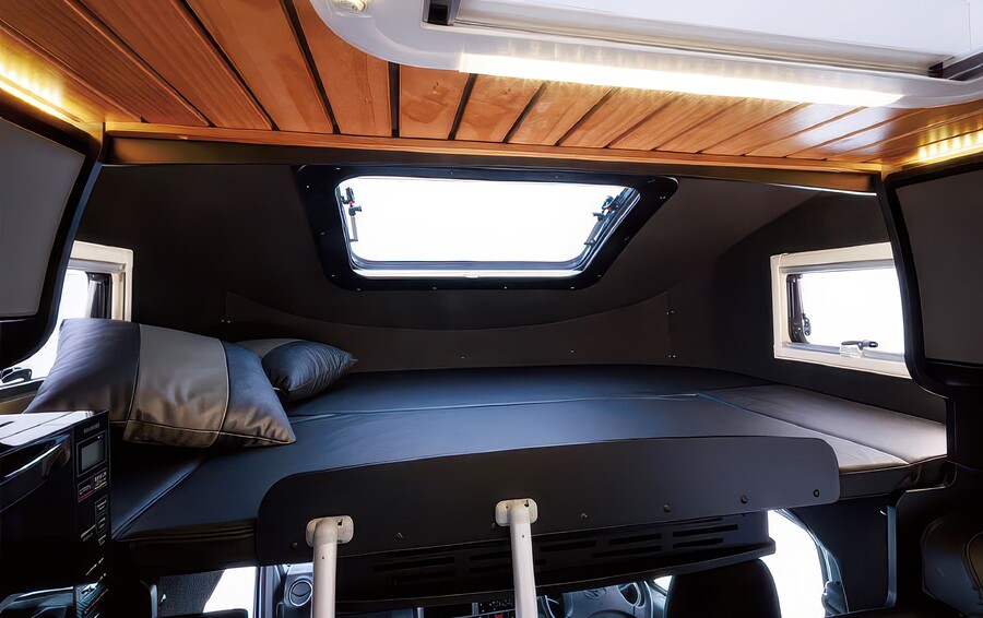 - ベッド: リア常設セミダブルベッド、バンクベッド。