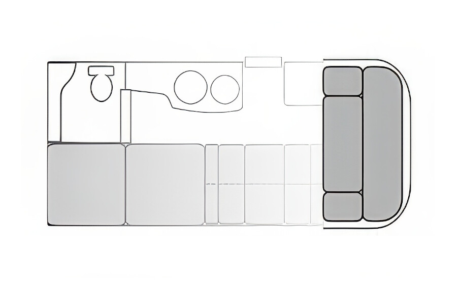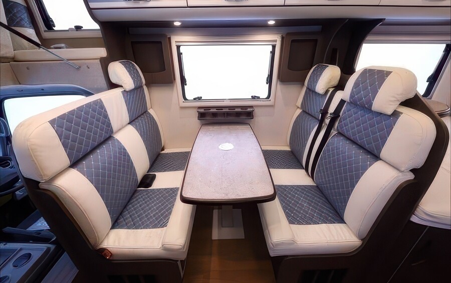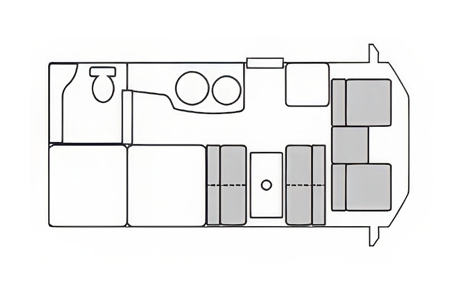 リアに対面ダイネットと充実の水回りを備えた、シリーズのスタンダード。