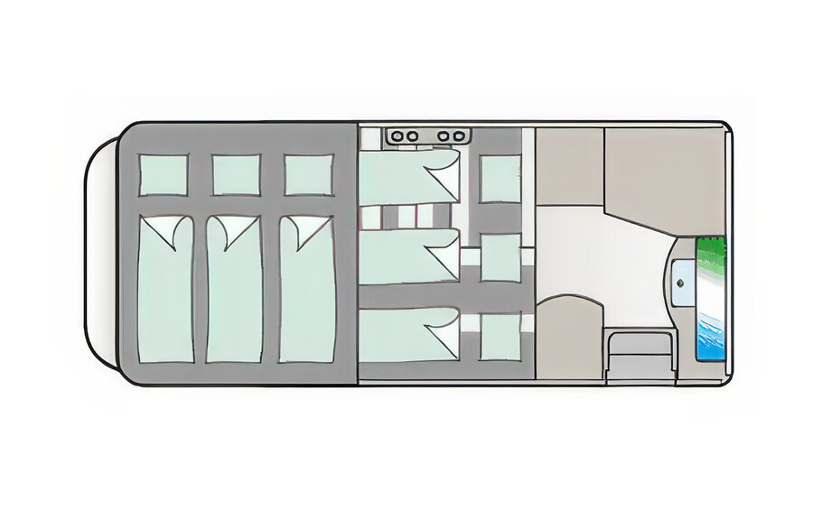 - バンクベッド: 大人3名が就寝可能なスライド式バンクベッド。