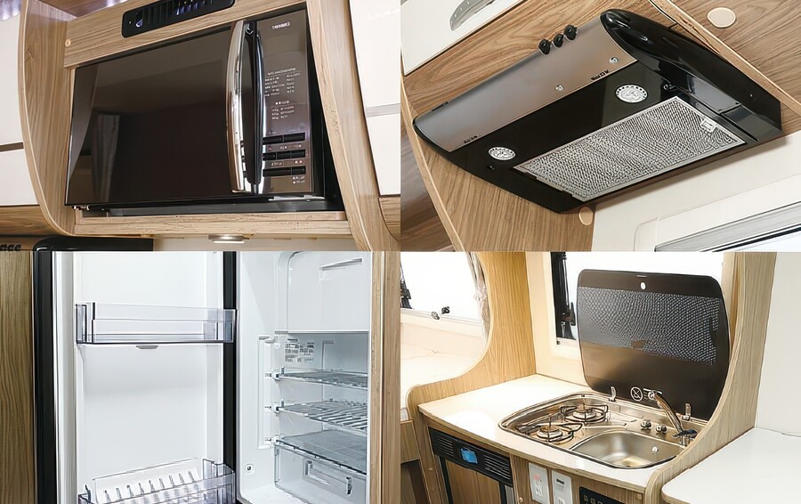 - 給排水: 清潔で耐久性の高い各60Lのステンレス製清水・排水タンク。
