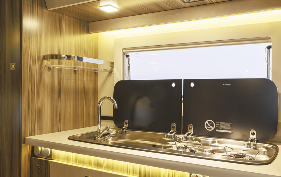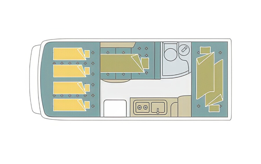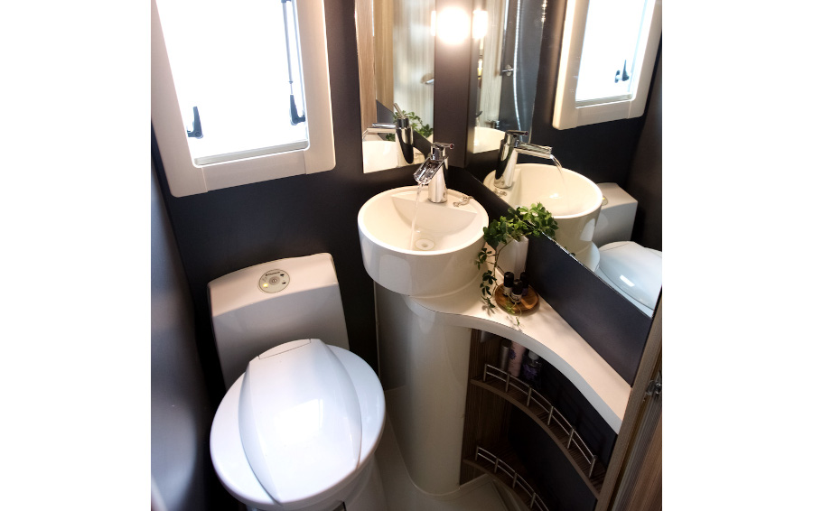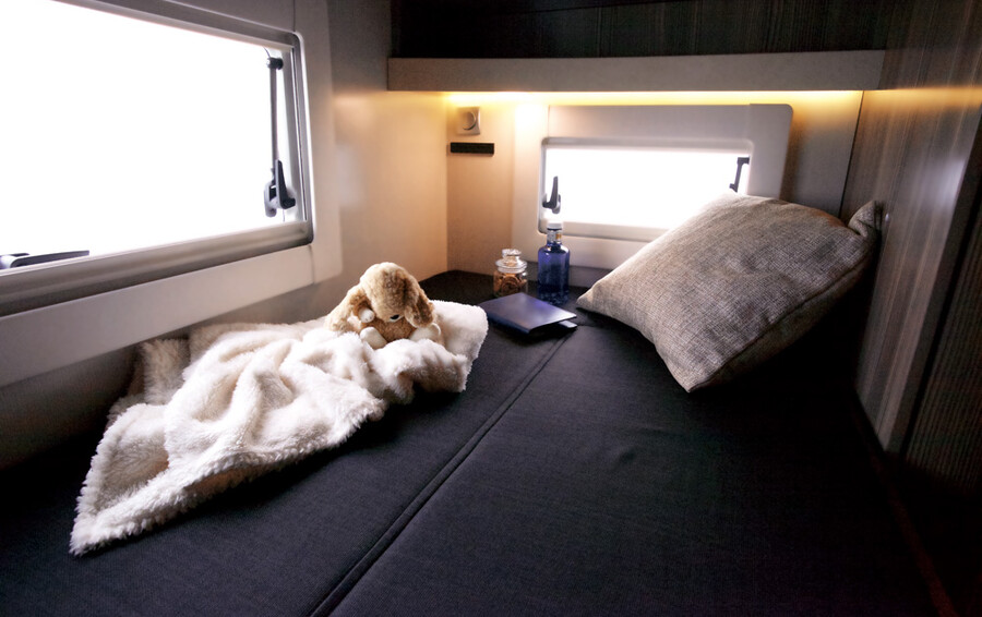 革新的な空調システムなど充実装備を身につけ、ワンランク上のキャンピングカーライフを演出します。センターエントランスレイアウトによりゆとりのあるリビングルームを実現。伝統のリヤ常設2段ベッドが進化し、心地よい休息を提供。ソリッドスクエアフレームを採用し、剛性感の高い走行フィーリングと重量バランスの向上を達成しています。