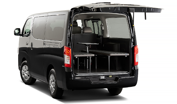 - 日産純正「マルチベッド」の存在: ディーラーでキャンピングカー仕様として購入できる「キャラバン マルチベッド」は、荷室スペースに備え付けられたベッドが特徴です。このベッドはワンタッチで上げ下ろしが可能な左右分割式となっており、左右独立しての使用や荷室全体に展開することも可能です。ベッド下にも広い収納スペースを確保できます。脱着式テーブルを組み合わせることで、車内での時間をより有意義に過ごすことができます。