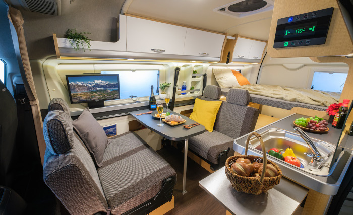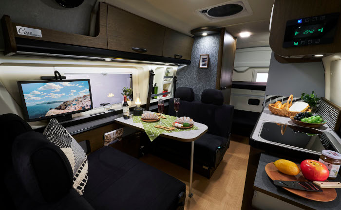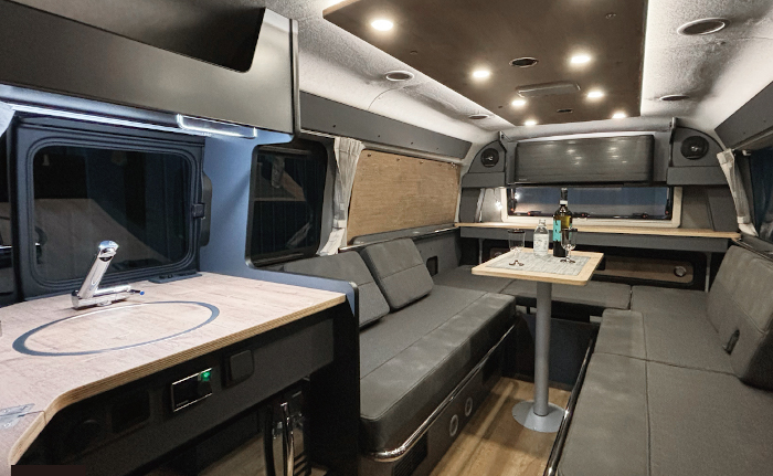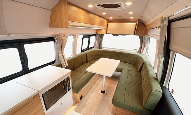リアルウッドを多用した上質な室内空間と強力な電装システムを搭載。落ち着いた“隠れ家”のような雰囲気が魅力。