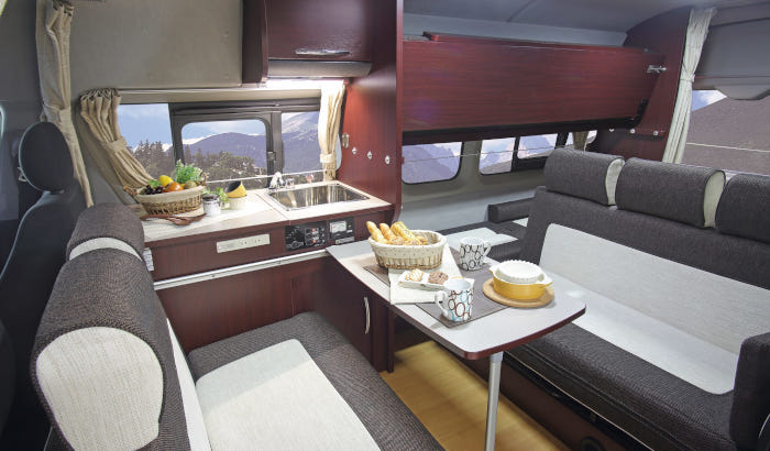 - ポップアップルーフ仕様は取り回しが良く就寝人数を増やせる