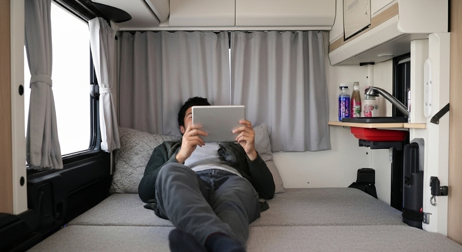 軽バンコンでありながら、大型キャンピングカーに迫る装備を備えたクラス。ソーラーパネルやインバーター、大型収納などが搭載されますが、この価格帯では軽キャブコンや普通車キャブコンも選択肢に入るため、目的に応じた比較検討が重要です。