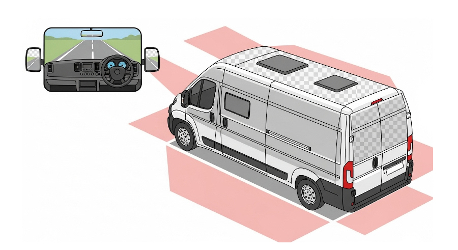 キャンピングカーに特有の死角と、それが事故リスクを高める理由についてご説明します。
