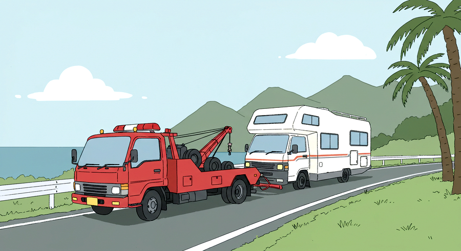 - ロードサービスの内容と牽引距離:旅先での故障や事故に備え、ロードサービスの内容は非常に重要です。キャンピングカーは特殊な車両のため、どこでも修理できるわけではなく、購入した販売店や専門の修理工場に持ち込むのが一般的です。多くの保険会社のロードサービスでは提携工場への牽引は距離無制限ですが、利用者が修理工場を指定した場合にレッカーできる距離が異なります。この距離が長ければ長いほど、希望する場所へ車両を搬送できる可能性が高まります。検証されている保険会社の例としては、アクサダイレクトは指定工場への牽引が150kmまで無料、イーデザイン損害保険は100kmまで無料(JAF加入で115kmまで)、損害保険ジャパンは15万円まで補償(約190km相当)、三井住友海上は工場指定の有無にかかわらず30万円まで補償(約390km相当)、セコム損害保険は工場指定の有無にかかわらず20万円まで補償(約260km相当)といった違いがあります。また、事故や故障で当日帰宅が困難になった場合の交通費や宿泊費の補償も確認しておくと良いでしょう。アクサダイレクトは搭乗者全員分に加え、ペットの宿泊費も補償するサービスを提供しています。JAF(日本自動車連盟)に加入していると、牽引距離の延長や30分以上の応急作業料金が無料になるなど、様々なメリットがあるため、併せての加入が推奨されています。JAFは「人」にかける保険なので、自家用車、レンタカー、同乗時、バイクでも適用される汎用性があります。