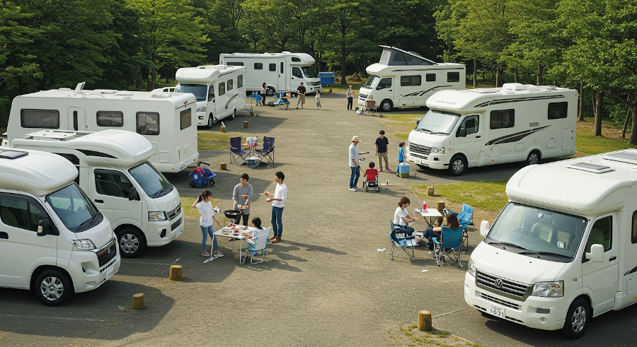 • RVパークには、余裕あるスペースや電源、入浴施設などの条件がある