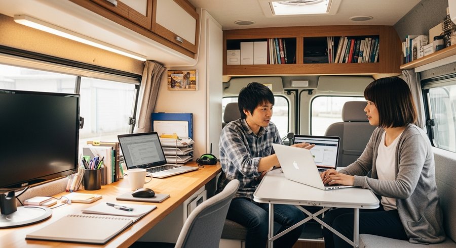- キャンピングカーをオフィス利用するメリットと費用を把握できる
