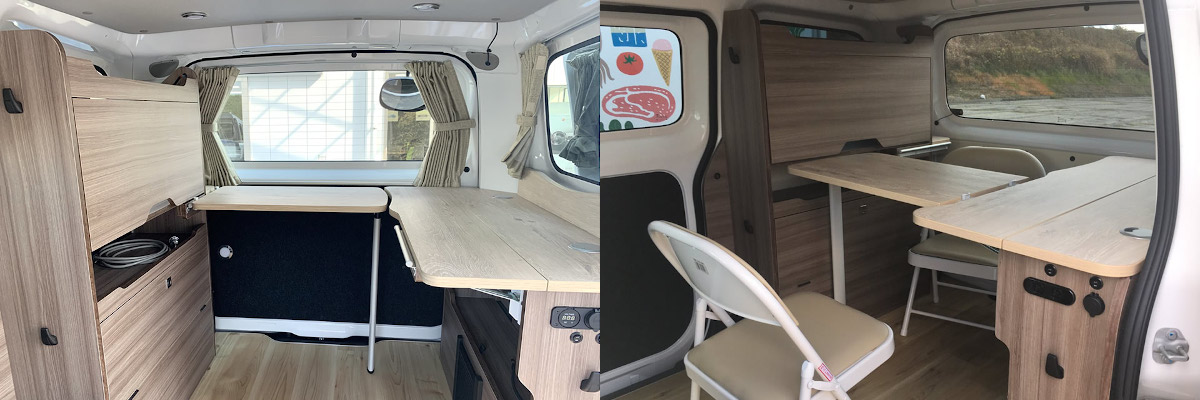 - 収納スペース: 書類や仕事道具、生活用品を整理するために十分な収納スペースがあると、車内をすっきりと保ち、作業効率を高めることができます。