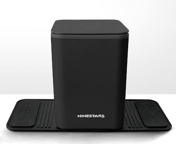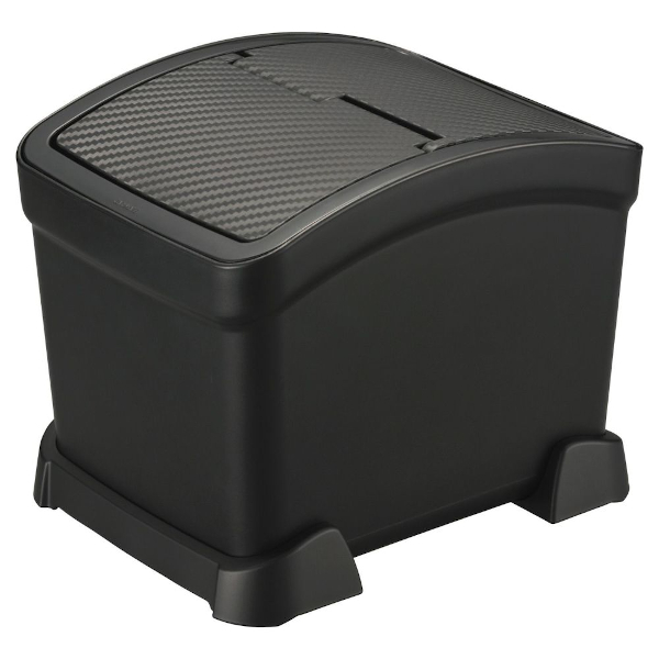 独自の「踏ん張る」底部サポーター構造を採用し、従来のおもり付きゴミ箱よりもさらに転倒や滑りに強いモデルです。左右どちらからもゴミを入れられるスイング式フタを採用し、コンパクトながら使いやすさも抜群。容量は約2.6 Lと小さめですが、助手席と後部座席の間やセンターコンソール横などに置いて使うのに適しています。カーボン調デザインのフタでインテリア性も高め。