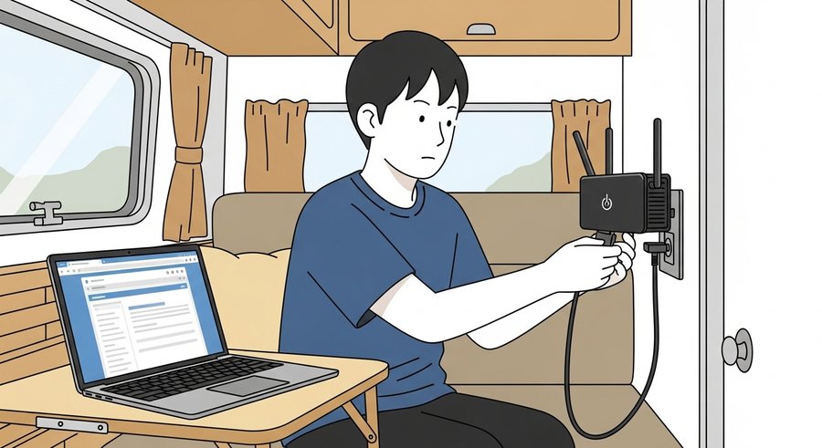 - 端末の耐久性: キャンピングカーの車内は夏場に高温になるため、高温に弱いモバイルWi-Fiルーターの置き場所に注意が必要です。バッテリーを搭載しないUSBタイプも選択肢の一つです。
