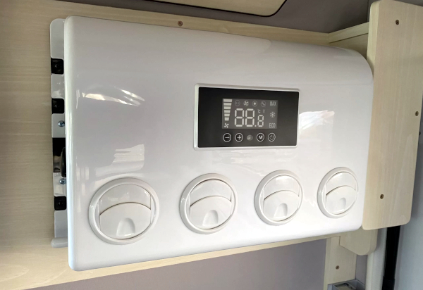 電装系も充実しており、安定した電源供給をサポートします。サブバッテリー(F1タイプでは100Ah)と、走行中に充電を行う昇圧タイプの走行充電システムが搭載されています。家電製品の使用を可能にする1500Wのインバーターも標準で備え付けられており、メインバッテリーとサブバッテリーの状態を最適に保つためのオートチャージャーとプロテクターも組み込まれています。外部からの電源取り込みに便利な外部AC100V入力コンセントも装備され、車内ではインバーターと外部入力電源を自動で切り替えるDC二口コンセントとAC100V二口コンセントが利用可能です。これらの電装品の操作は、使いやすい6連スイッチパネルで一元的に行えます。