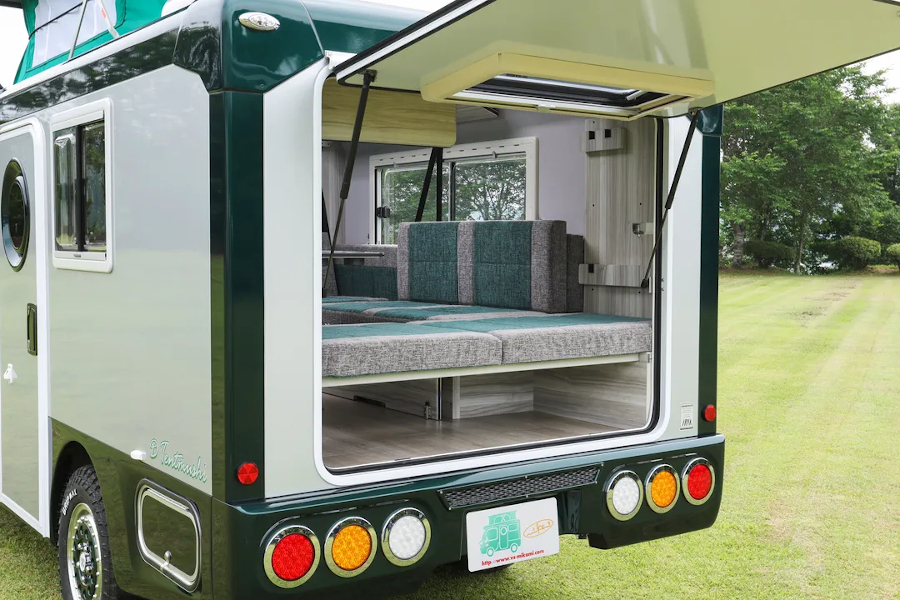バンショップミカミが手掛ける「テントむし」は、その愛らしいポップアップルーフとワンポイントの丸窓が特徴的な、軽キャンパーの代名詞ともいえる存在です。キャッチーなルックスと、軽自動車というサイズからは想像できない高い機能性で、多くのキャンピングカー愛好家から好評を得ているベストセラーモデルです。