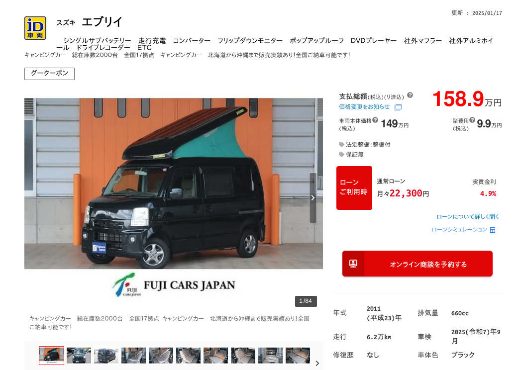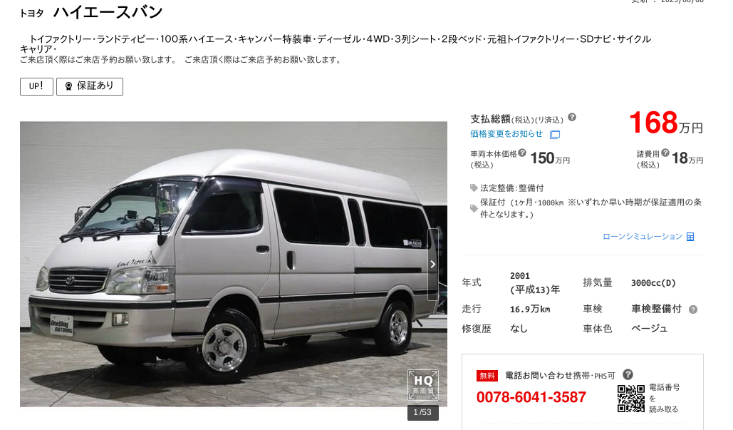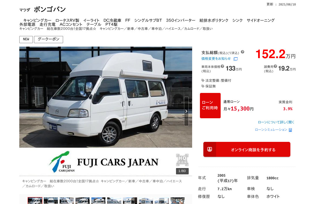 - 150万円は中古キャンピングカー市場では比較的手頃な価格帯である