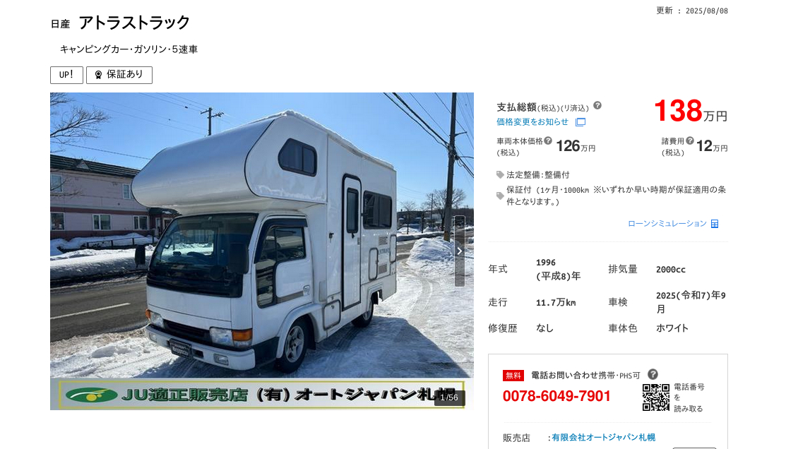 かつてのキャブコン三大ビルダーの一つであった「グローバル」社(現在は解散)が製造していたモデルで、100万円台で購入できる可能性があります。2段ベッドタイプやL字型ダイニングタイプなど多様なレイアウトがありました。しかし、パネルの継ぎ目からの雨漏りが非常に多いという致命的な注意点があり、購入時には床や壁の腐食がないか徹底的な確認が必要です。オークションなどで安易に購入すると「ババを引く」リスクが高いとされています。 - ライトエーストラックベースの「リエキスポート・アウトドアジュニア」